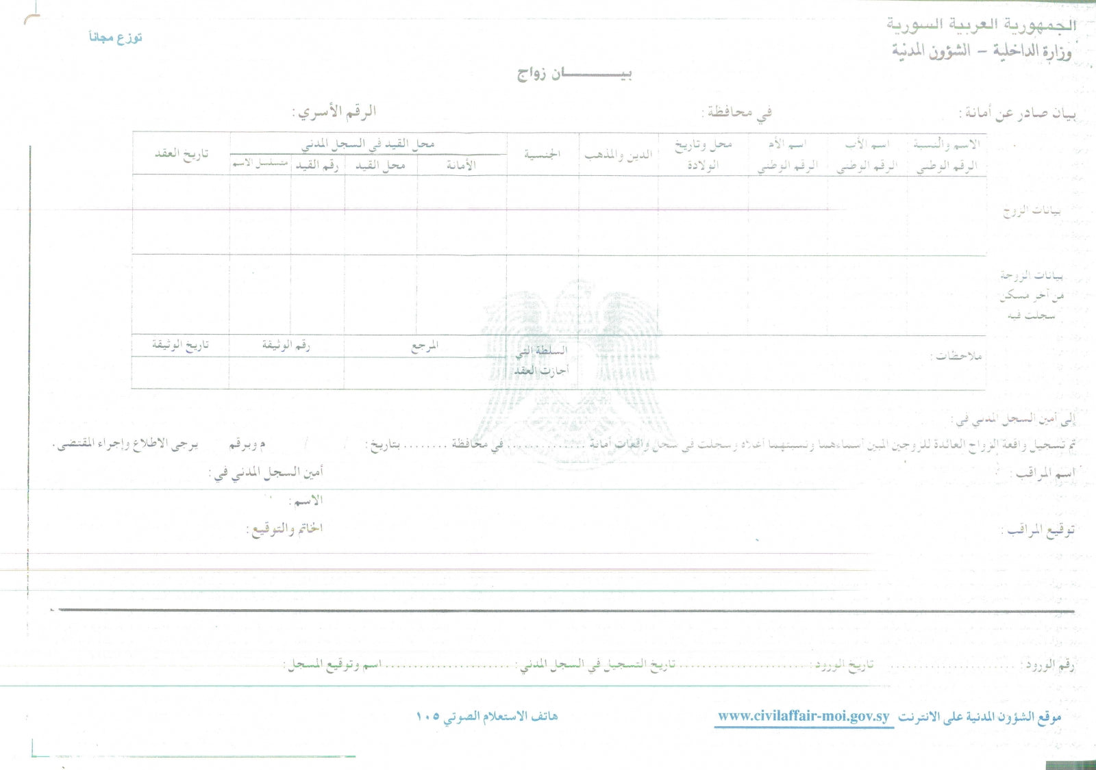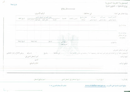 Certificate of Marriage / Marriage Contract / Marriage Certificate (SYR) عقد زواج